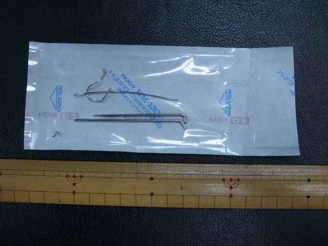 5日間ほどお休みして皆様にはご心配&ご迷惑をお掛けしましたが28日(土)より通常営業に戻りました。入院したのは昨年春レース中に転倒落車して骨折した左肘尺骨に入っていた金具(右の写真)を撤去するためです。当初はそのままの予定でしたがここ数ヶ月違和感があり痛みも感じるようになったのでこの時期ですが思い切って手術しました。ついでというわけでは有りませんがここ1,2ヶ月気になっていた鼠径ヘルニアいわゆる脱腸も一緒にやっつけてしまおうと担当ドクターに相談したところ大ノリで「やりましょう、せっかくの全身麻酔だから。ウチじゃああんまりやらないけど」となって医療ドラマみたいに執刀医二人(外科と整形外科)が順番に入ってきて切った(らしい)。肘は金具を抜くだけですがヘルニアは場所が場所だけに下ネタ連発で残念ですがここに書けないのは言うまでも有りません。術後の経過は順調で24時間後には点滴も外れ、丈夫だけが取り柄の中年アスリートには白衣の天使も素っ気なくてかまってもらえず退屈で死にそうでした。まあ、健康だからこんなことも言えるんですけどね。今日から楽しくお仕事とリハビリです。